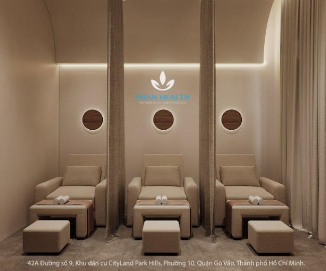 - Trị liệu ôn kinh chân: sử dụng phương pháp dưỡng sinh đông y: Ấn huyệt và đả thông kinh lạc theo nguyên lý đông y (Điều – Bài – Bổ – Dưỡng), kết hợp bài thuốc Shan Health chăm sóc chuyên sâu